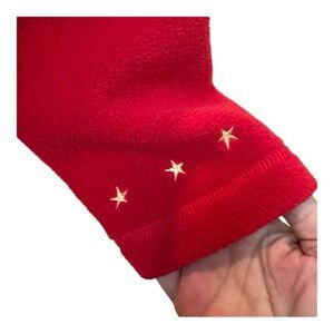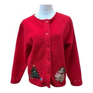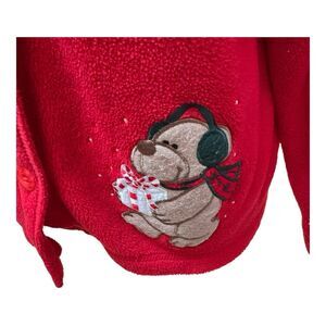 CB Casual Red Fleece Holiday Christmas Appliqué Button Front Cardigan Size PM
