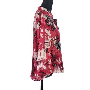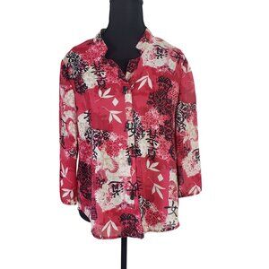 C.B. Collections Womens Petite Asian Floral Print Button-Up Blouse Size Medium
