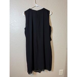 Keywords: black dress, sleeveless dress, rhinestone dress, cocktail dress, party dress, evening dress, formal dress, embellished neckline, CB Established 1962, women's dress, size 12, layered dress, flowy dress, special occasion
