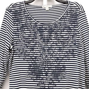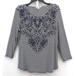 CB Established 1962 Shirt Womens Large Black Striped Scroll Print Rhinestone