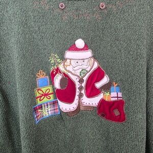 C&B Green Santa Christmas Presents Embroidered Winter Grandmacore Sweater Size L