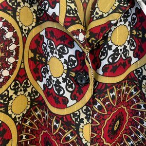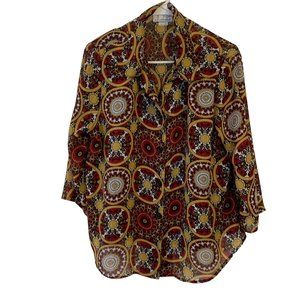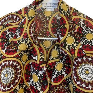 CB Petite c.b. collections Gold Red Circle Patterns Sheer Light Blouse XL Y2K