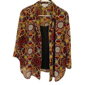 CB Petite c.b. collections Gold Red Circle Patterns Sheer Light Blouse Petite XL