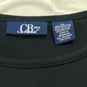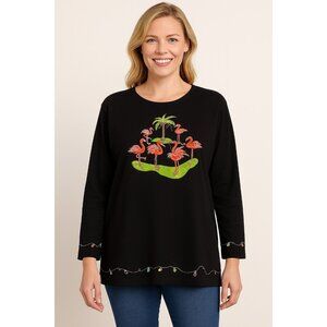 CB Plus C.B. Casual Women’s 1X Flamingo Island Holiday Embroidered Black Top