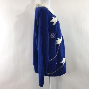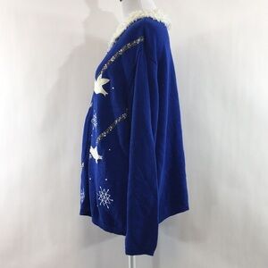 CB Plus Collections Blue Dove Knit Cardigan Womens 2X Holiday Beaded Sweater