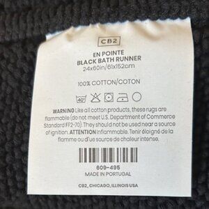 CB2 100% Cotton En Pointe Black Bath Runner 24 x 60in