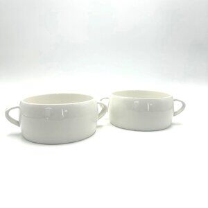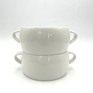 CB2 White Ceramic Double-Handled Soup Bowls, Set of 2, Minimalist Organic Modern