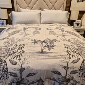 CB2 x Matthew Williamson Midnight Jungle Linen King Duvet Cover + 2 Std. Shams
