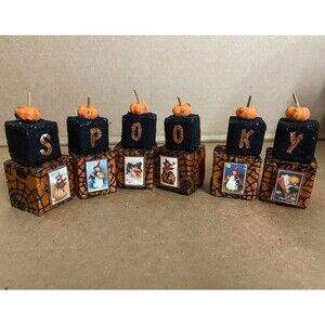 CBK Spooky Glitter Blocks Vintage Look Imperfect Halloween Decor