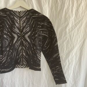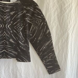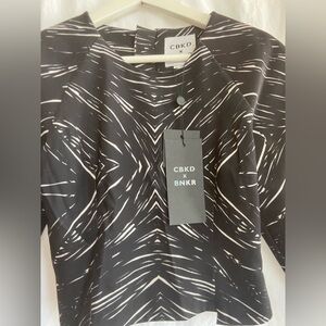 Elevate your wardrobe with this chic black and white top. Perfect for any occasion, this stylish piece offers a modern look with its unique pattern. A must-have for fashion-forward individuals.