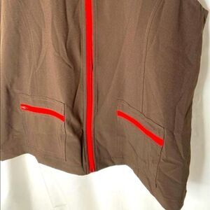 CBK SPORTS VEST Size Medium ⛳️ Lightweight dark brown vest with red accents. This size small by CBK Sports features a full front zip closure and zip pockets. Great for golf or outdoors wear