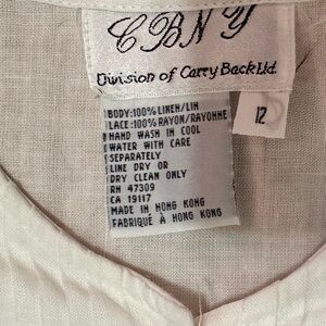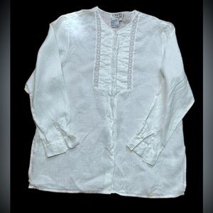 CBNY White Linen Blouse Women’s Size 12 Button Front Embroidered Lace Trim Vintage