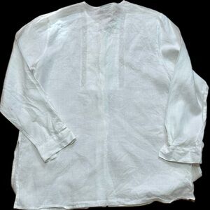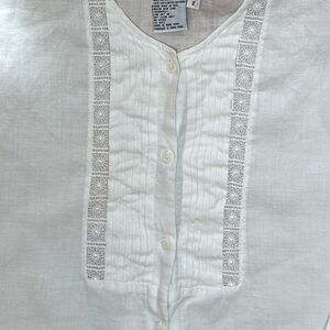 CBNY White Linen Blouse Women’s 12 Button Front Embroidered Lace Vintage wb