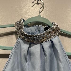 CBR Dress Satin Sequin Summer Party Light Blue Silver Sleeveless Women sz Medium