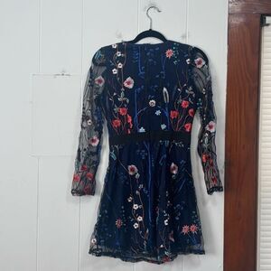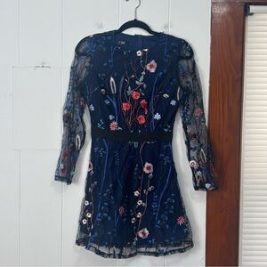 CBR Navy Floral Embroidered Sheer Dress Size Small