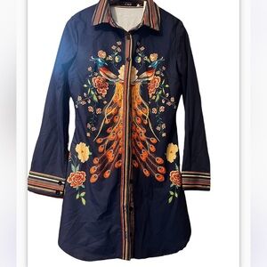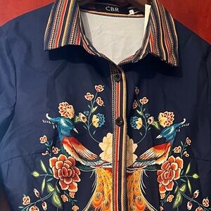 CBR Peacock Print Shirt Dress Button Dress Sz M Women