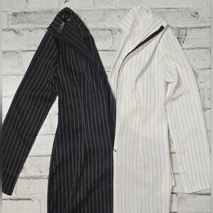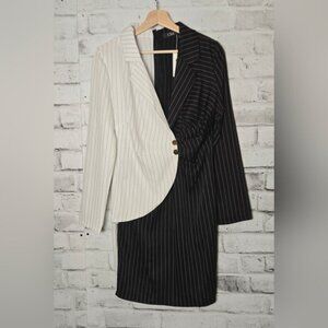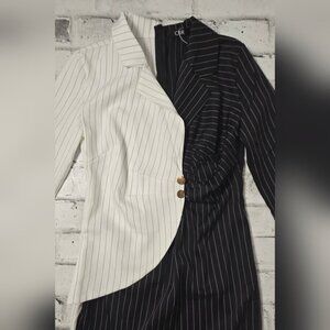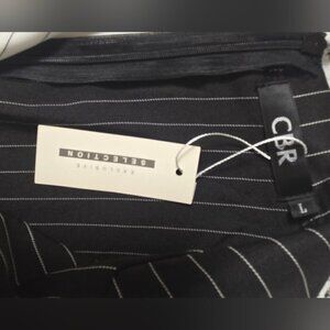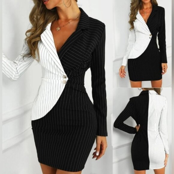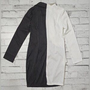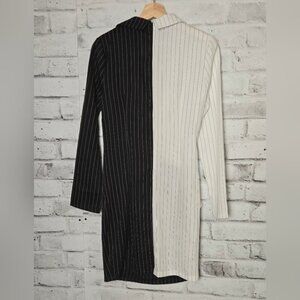CBR Turn Down Neck Long Sleeve Buttons Striped Patchwork Bodycon Dress ~ NWT