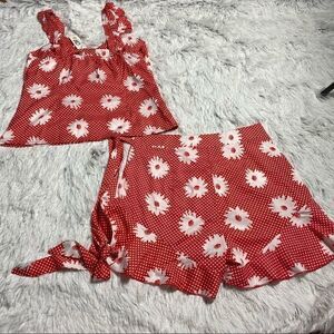 Polyester V-Neck Sleeveless Above Knee/Short Print Casual Top & Short Sets