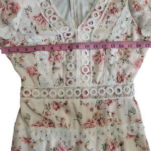 CBR beautiful floral dress, it is sized a med but dress the dress is a size small. Please see picture of measurements.