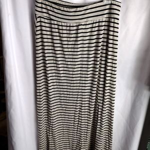 cream and black maxi skirt. rayon spandex blend. waist 17.5 length 42". SS
