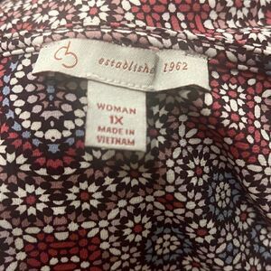 Kaftan print short sleeve blouse with a keyhole in front. Stretchy. Plus size 1X.