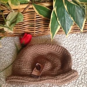This is a lovely NWOT knit beanie hat by C.C. The hat is accented with a knitted flower with beads.