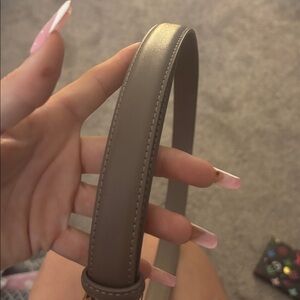 Brand new Chanel belt has the gold cc on the logo. It is a skinny women’s belt. I am around the size 28 to 29 in my waist and it fits me. It is adjustable. It has many holes and it is brown leather. It’s a nice belt.