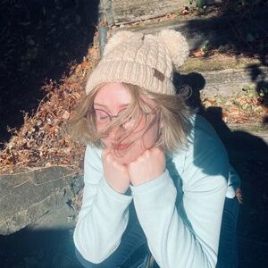 CC Beanie Double Pom Pom Beige One Size