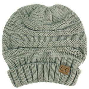 NEW CC Beanie Knit Slouchy Thick Cap Hat Unisex Solid Color (GRAY)