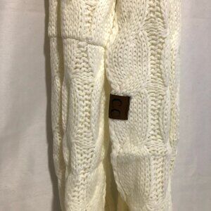 Solid Cable Knit CC Infinity Scarf from CC Beanie. New in package tags, only opened for photos. Cream knit infinity scarf. HAND WASH ONLY. Lay flat or hang to dry. 100% acrylic. Measures: 30" in. L x 13" in. W