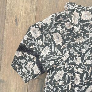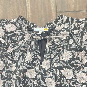 C&C Black Pink Boho Peasant Floral Top S NWT