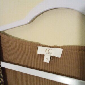 CC Blouse S 3/4 Sleeve Soft Stretch Ribbed Asymmetrical Animal Print Brown Black