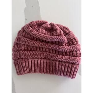 CC Brand Chunky Soft Stretch Cable Knit Warm Skully Beanie Raspberry Pink EUC