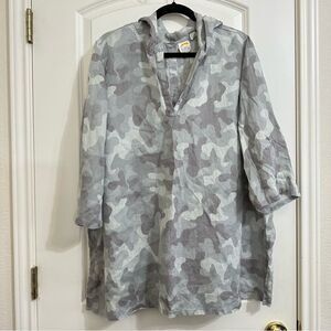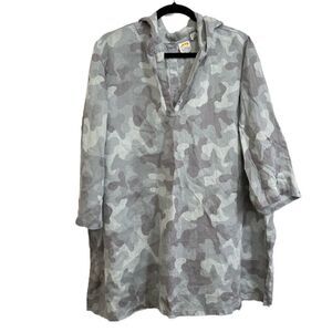 C&C CALIFORNIA 100% LINEN CAMO HOODIE TUNIC TOP 1X OVERSIZED PULLOVER LAGENLOOK
