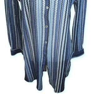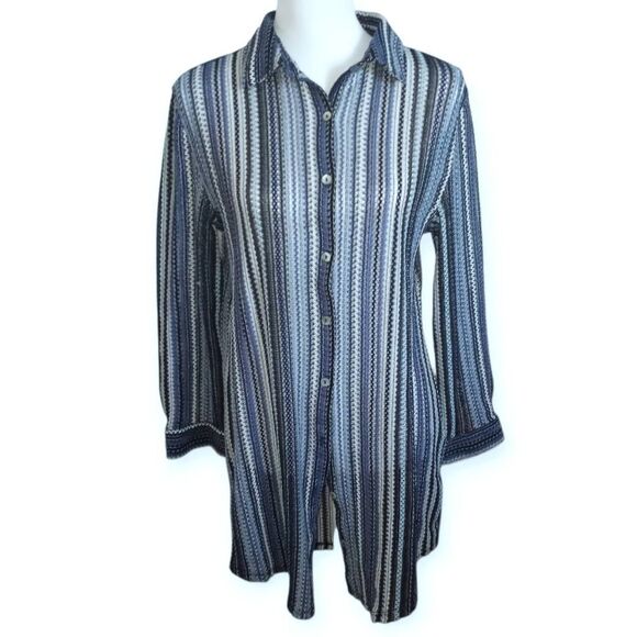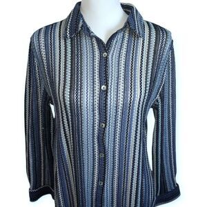 C&C CALIFORNIA BLUE & WHITE BUTTON DOWN CROCHET BLOUSE SZ.L EUC. GORGEOUS BLOUSE IN EXCELLENT USED CONDITION.