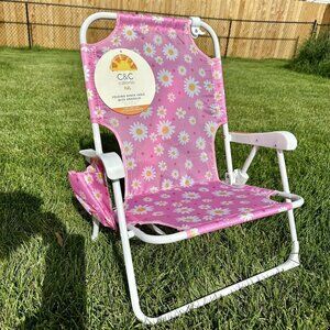 C&C CALIFORNIA Beach Chair Age 3-6 Daisy Pink Umbrella Foldable Cup Hold…