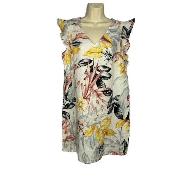 C&C CALIFORNIA C&C California Linen Flutter Sleeve Hawaiian Floral Mini Dress
