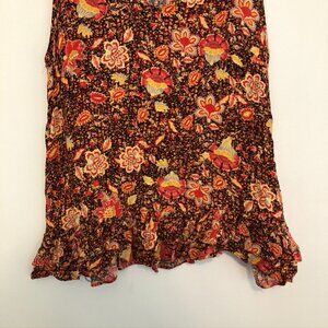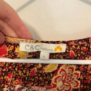C&C CALIFORNIA Red Mustard Navy Floral Geo V-Neck Ruffle Sleeveless Tank Blouse