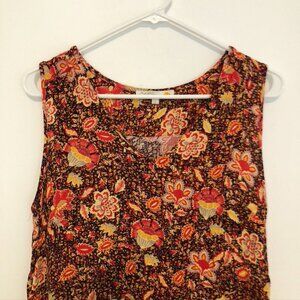 - red / mustard yellow / navy blue / cream ish floral geo geometric printed v-neck sleeveless tank blouse top