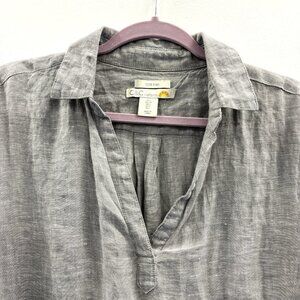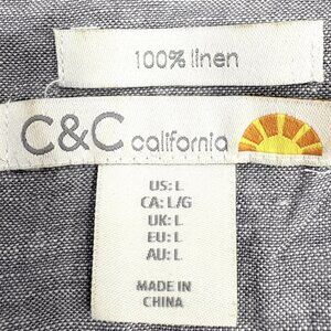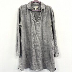 C&C CALIFORNIA Womens Grey Tunic Dress 100% Linen Size Large Long Sleeve Pockets