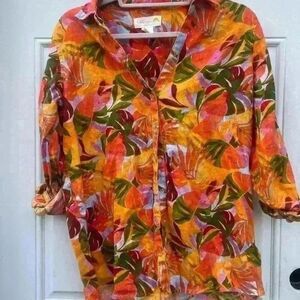 C&C CALIFORNIA Linen Shirt Roll Tab Sleeve Starburst Tropic Print Top SZ small