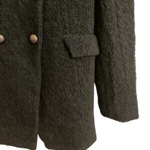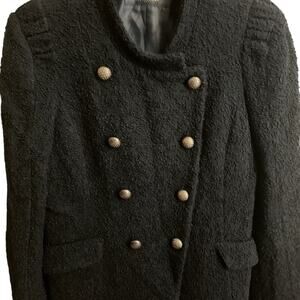 CC COLLECT Women's XS Black Boucle Wool Blazer Jacket Double Brass Buttons Chic