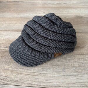 Gray C.C beanie in excellent condition. Cozy and casual yet stylish, it has a stretchy cable knit and a short brim — perfect for keeping the sun out of your eyes while skiing, running, or hiking.