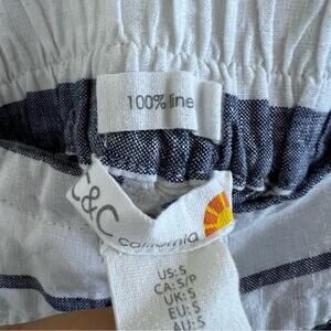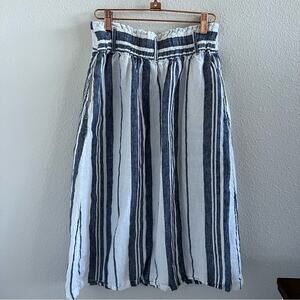 C&C California 100% Linen Midi Striped Blue and White Skirt Small