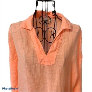 NWT 100% Linen long sleeve popover C&C California top. V neck collared top. Side splits. Peach colored. Size XS oversized. Approximate measurements: