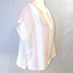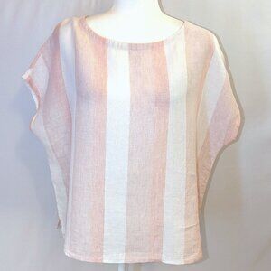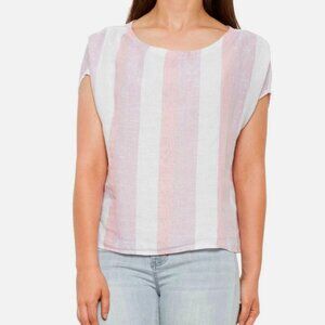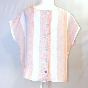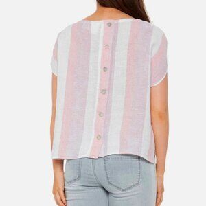 C&C California | 100% Linen Striped Button Back Boxy Top White & Pink | Medium