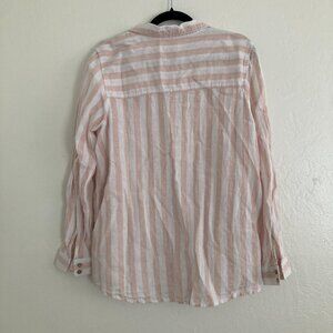 C&C California 100% Linen Striped Button Down Top White Pink Beach Nautical L