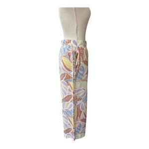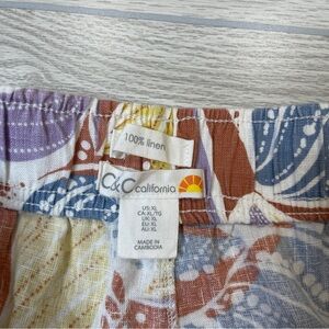 C&C California 100% Linen Tropical Palm Leaf Wide Leg High Waisted Pants Size XL