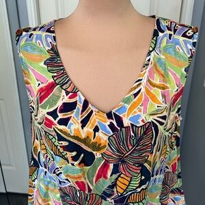 C&C California 100% Linen Tropical Print Shift Dress With Pockets