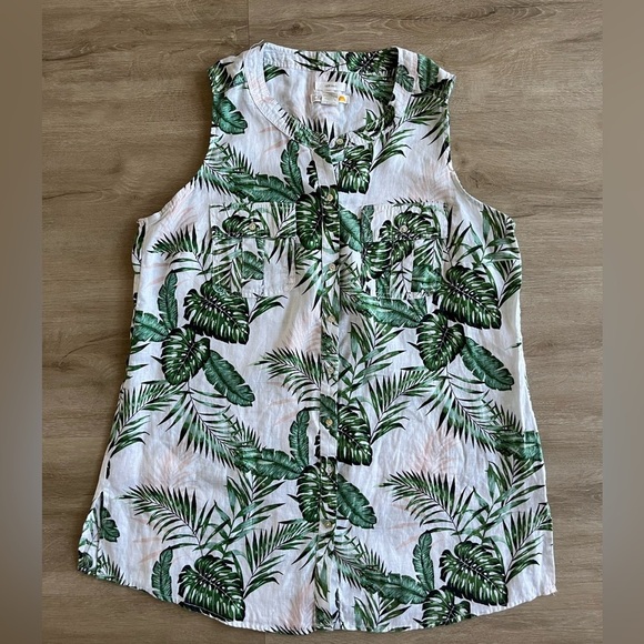 C&C California 100% Linen Tropical Print Tank SZ 1X